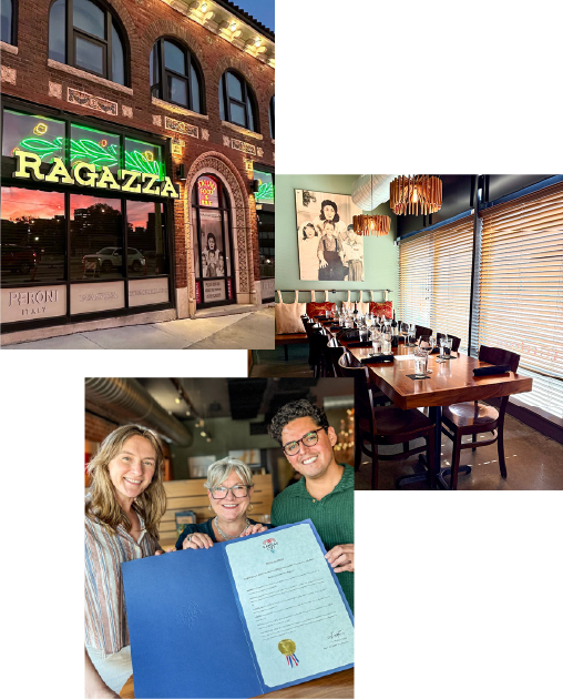 In 2019, Ragazza moved a few blocks away to another historic building at the corner of 43rd and Main Street in Midtown Kansas City’s Southmoreland neighborhood. The larger space has allowed Ragazza to grow and thrive, providing the same inclusive hospitality that Laura has strived for since Ragazza’s humble beginnings.